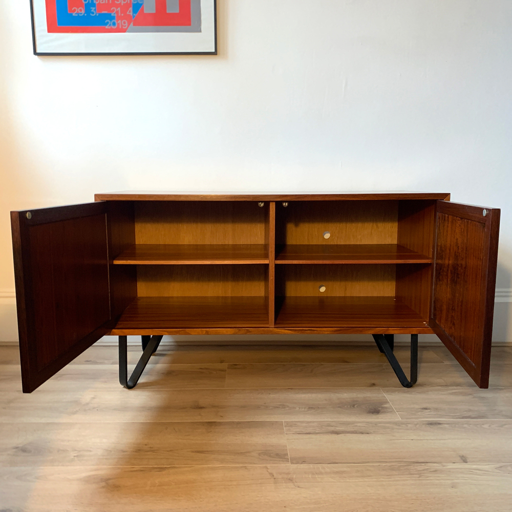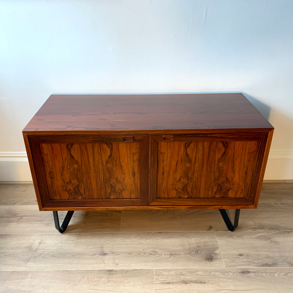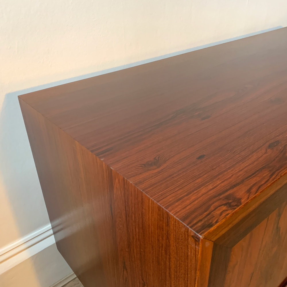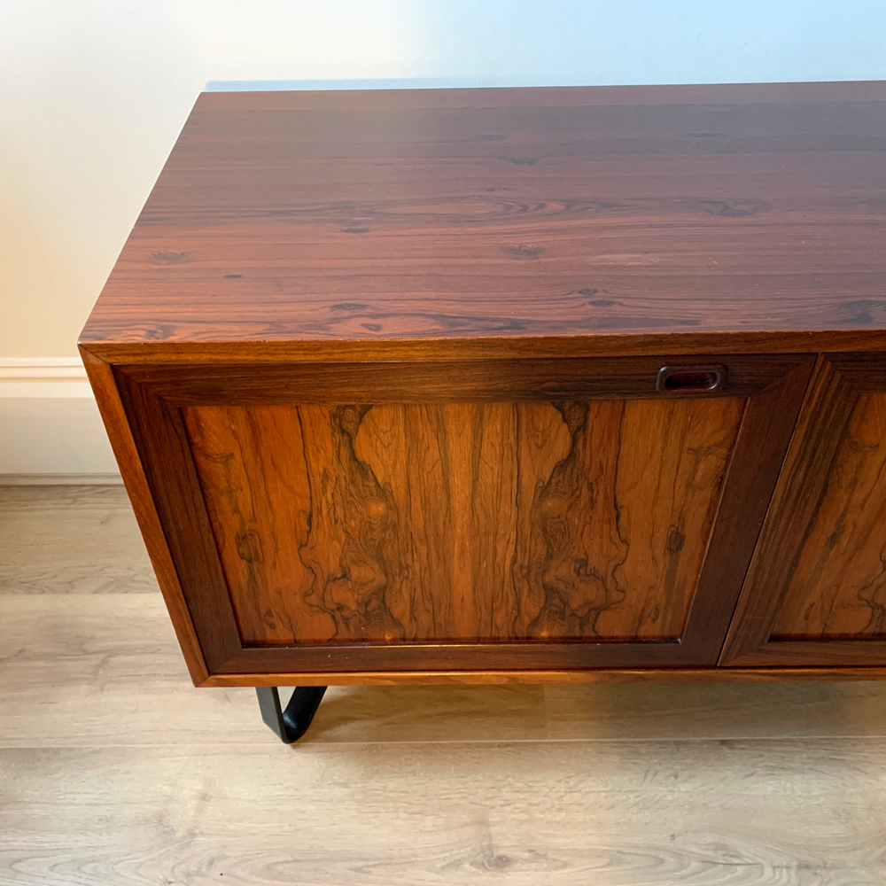 High-quality Danish Rosewood Sideboard from the 1970s and manufactured by Sejling Skabe. Featuring two cupboard doors with recessed door pulls, and internal shelving.