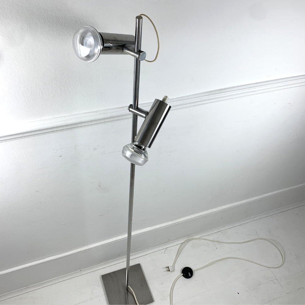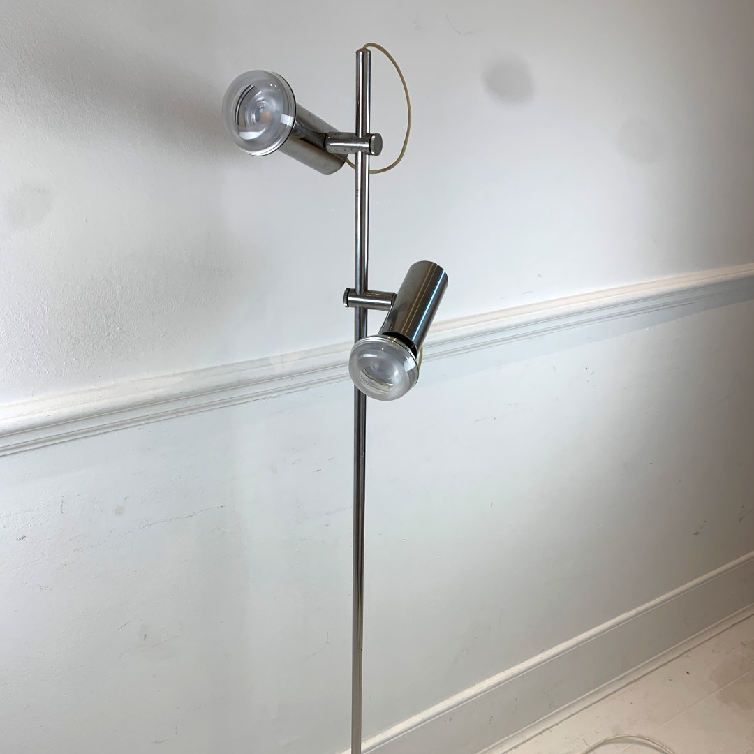 Minimalist Tube Floor Lamp, features 3 function switch that lights up both lamps, lower or upper only, has a Euro plug.