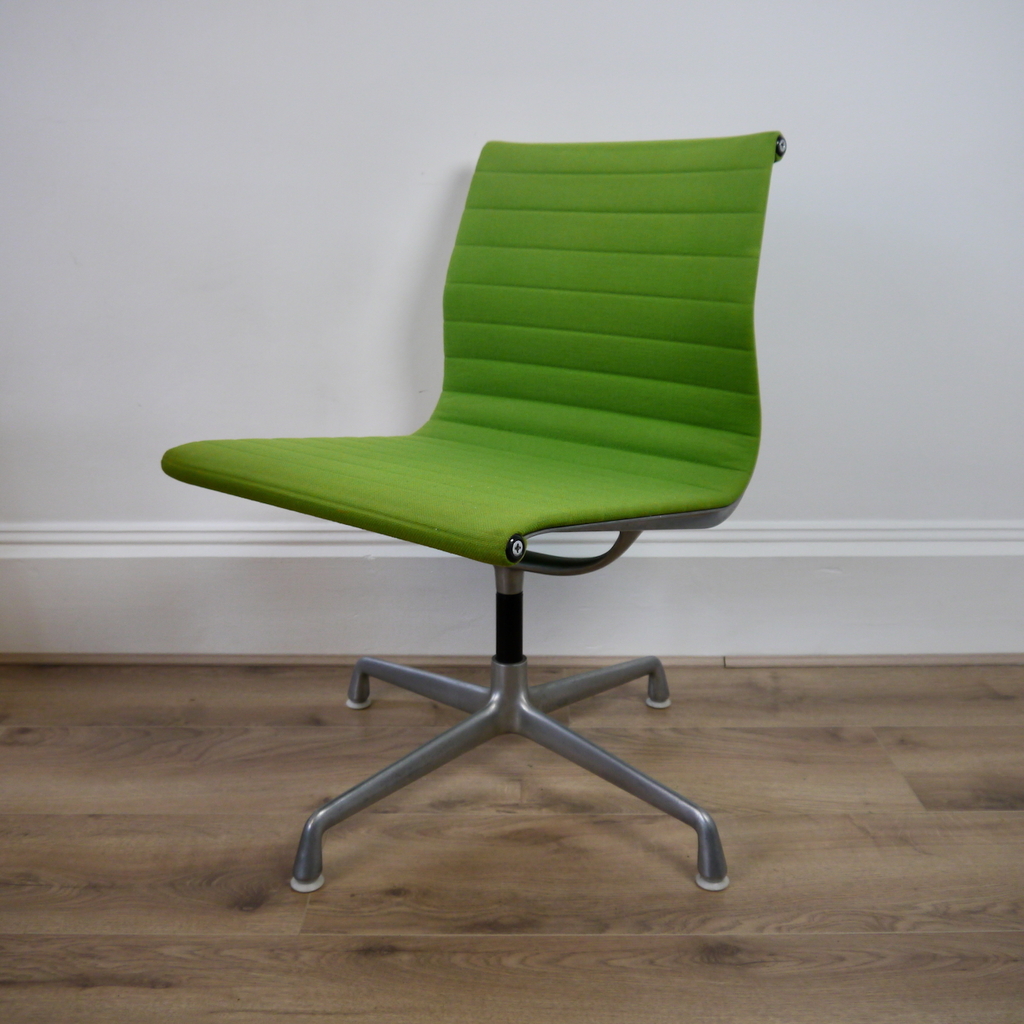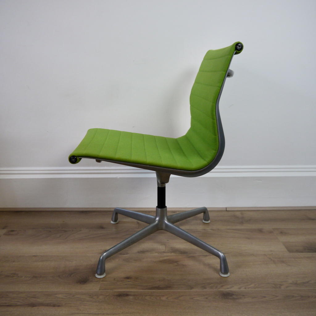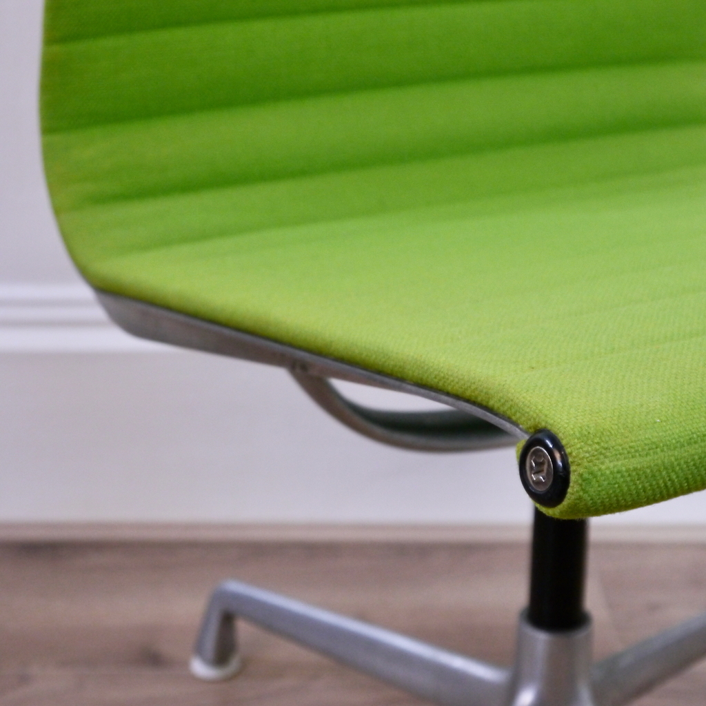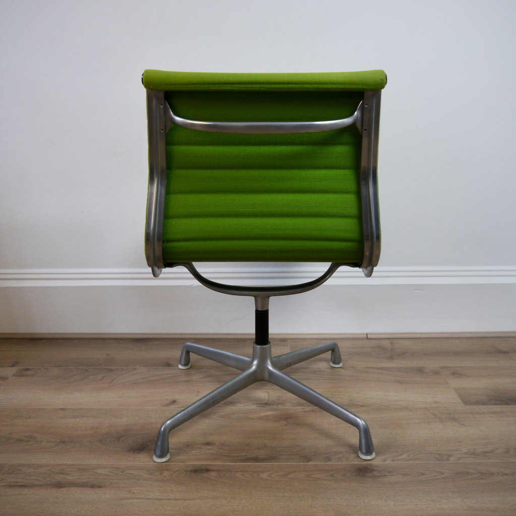 Herman Miller Aluminium Chair EA 108, Green Hopsack, Four Star Swivel Base with Glides. Charles and Ray Eames created an icon of the twentieth century with their design of the Aluminium Chairs EA 105-108. These famous classics are found in countless homes and living spaces around the globe. W: 52cm H: 84cm D: 60cm Seat Height: 48cm