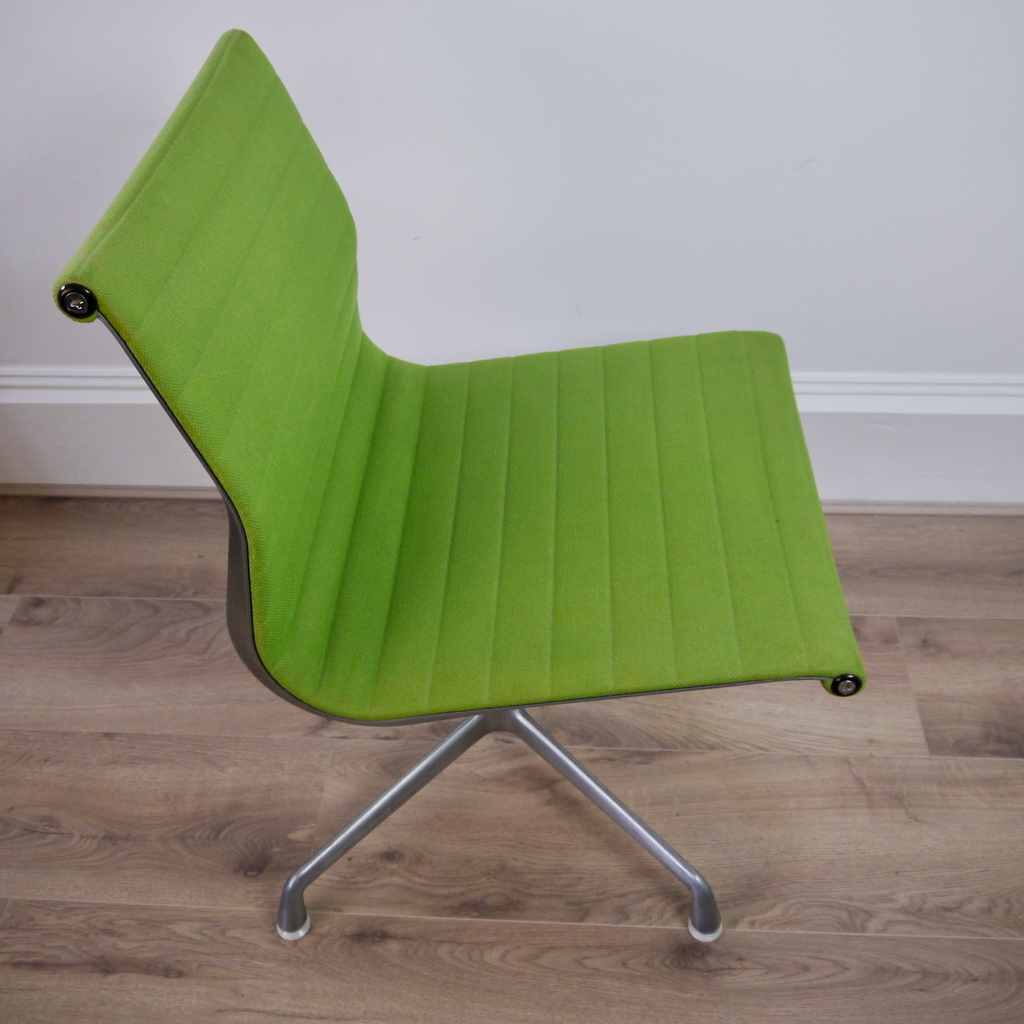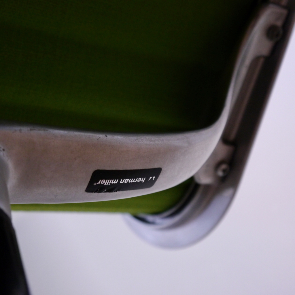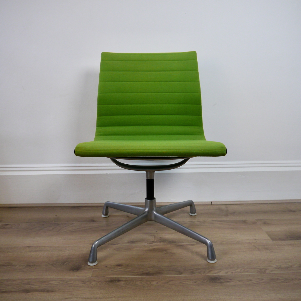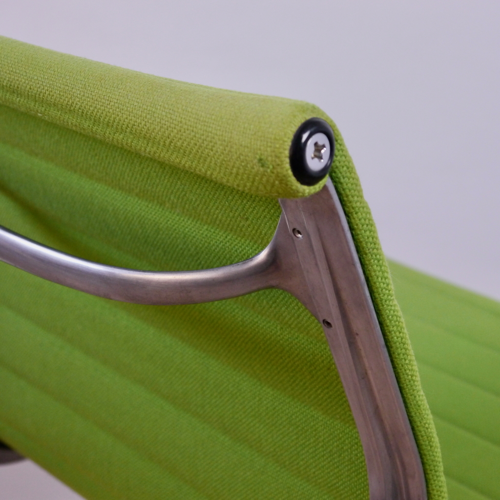 Herman Miller Aluminium Chair EA 108, Green Hopsack, Four Star Swivel Base with Glides. Charles and Ray Eames created an icon of the twentieth century with their design of the Aluminium Chairs EA 105-108. These famous classics are found in countless homes and living spaces around the globe. W: 52cm H: 84cm D: 60cm Seat Height: 48cm